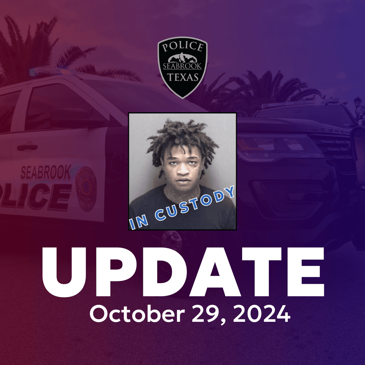 The suspect, Dawayland Earnest Hurst, was taken into custody on multiple felony warrants spanning three counties. He is currently held at the Galveston County Jail.